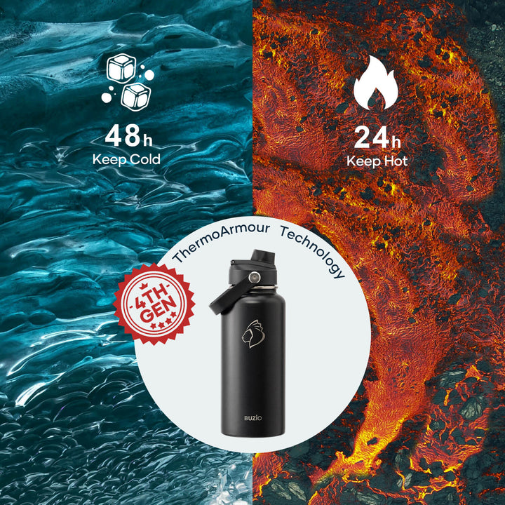 Buzio 32 oz water bottle is a must-have for anyone looking to stay hydrated throughout the day. Made with high-quality stainless steel and featuring double-walled insulation, our 32oz water bottles are the perfect choice for anyone on the go. The wide mouth design makes it easy to fill and clean, while the best water bottle straw adds convenience and functionality to your daily routine. With the option for bulk custom water bottles, you can easily promote your business or organization. Our cheap water bottles in bulk make it easy to stay hydrated affordably, while the superior quality of our stainless steel insulated water bottles ensures that your drinks stay hot or cold for hours. Choose our 32oz water bottle for unparalleled value and quality.