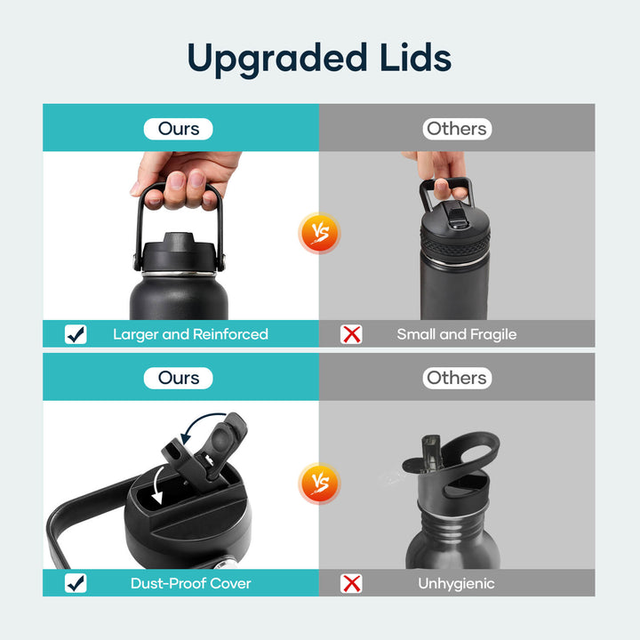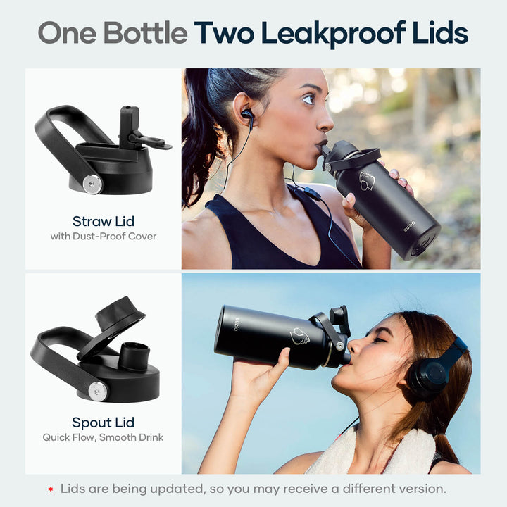 Insulated Water Bottles with 2 Lids | 32oz | Black