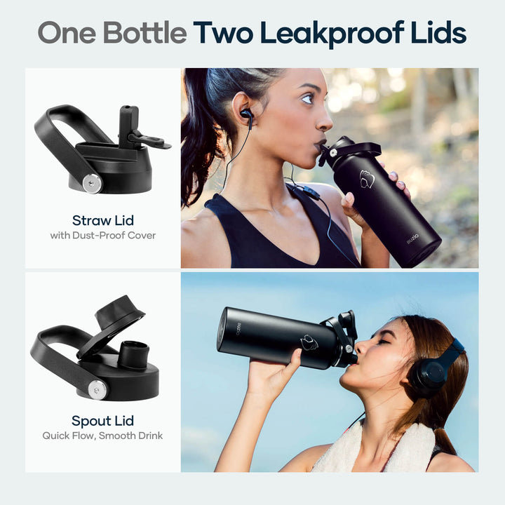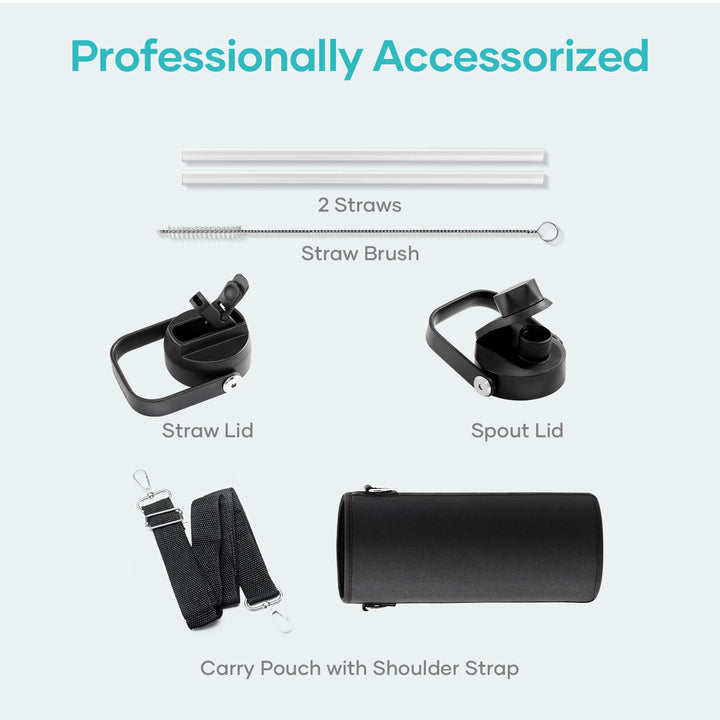 Insulated Water Bottle with Straw Lid | 40oz | Black