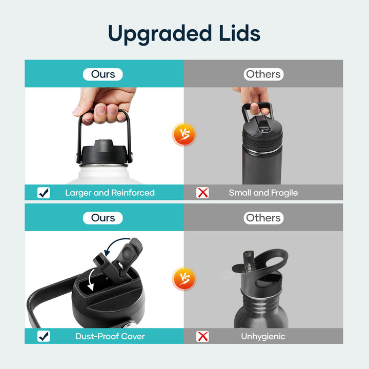 Buzio water falsk is constructed from high-quality food grade 18/8 stainless steel and BPA-free materials, and its durable construction ensures you can rely on it for years to come. And also it's LEAD FREE.