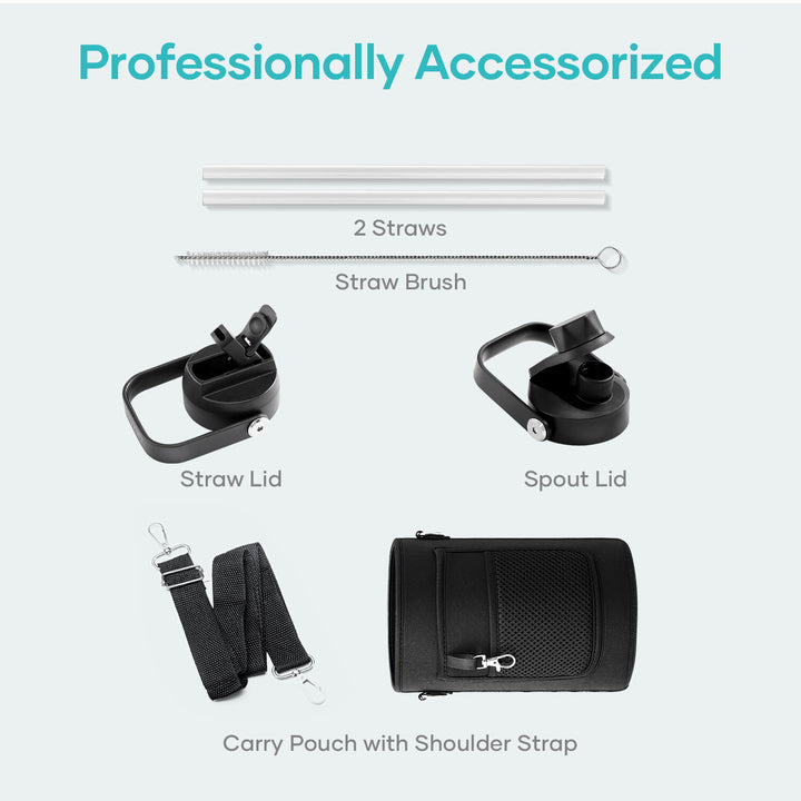 Insulated Water Bottle with Straw Lid | White Black | 128oz
