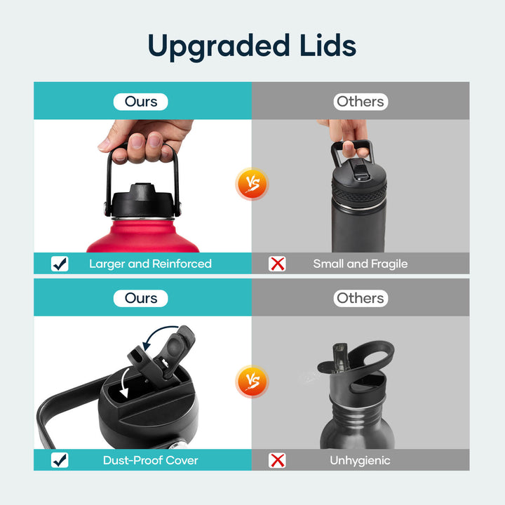Insulated Water Bottles with 2 Lids | Ruby Red Navy | 64oz