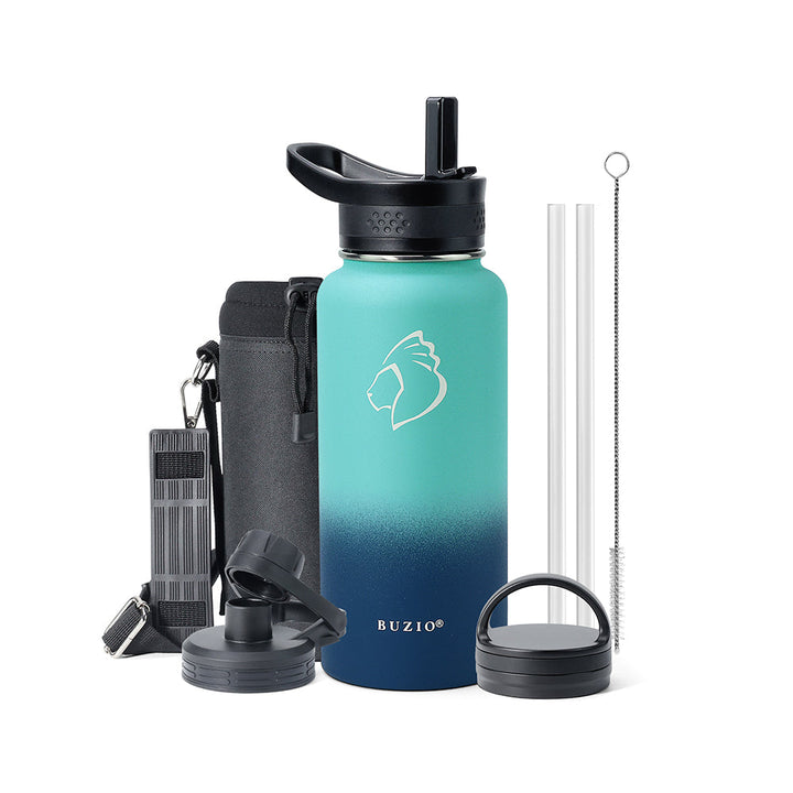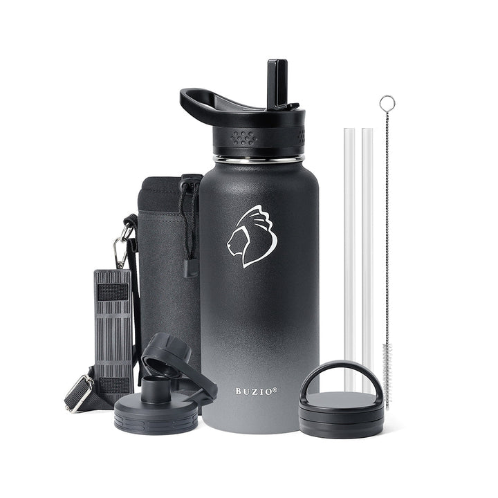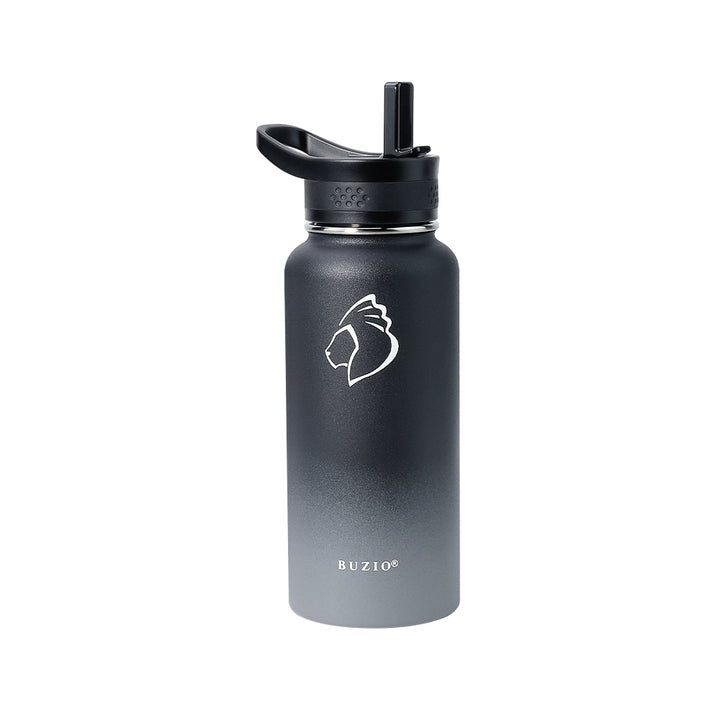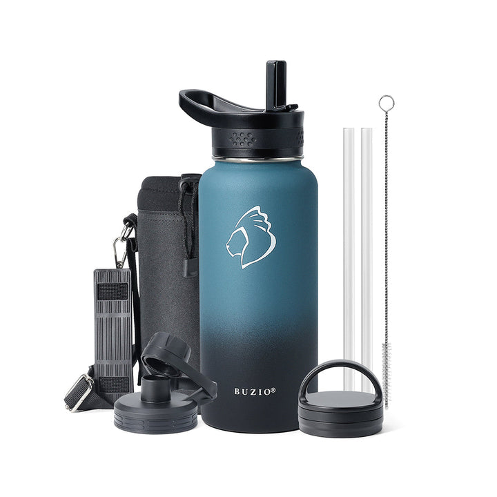 - KEEP COLD/HOT - Buzio insulated sport water bottle features in advanced vacuum insulation technology, 32 oz water bottle keeps your drink cold for up to 48 hours and hot for up to 24 hours, allowing you to enjoy icy cold drinks after intense workouts or a cup of hot coffee while winter camping.